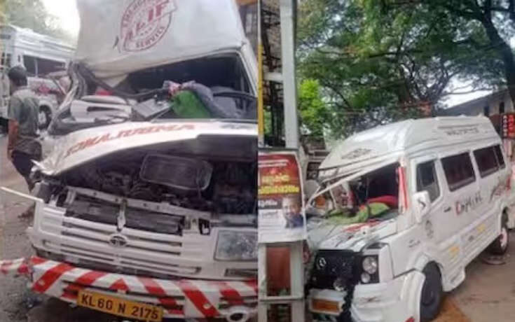 സുല്ത്താന് ബത്തേരിയിൽ നിന്നും കോഴിക്കോടേക്ക് വരികയായിരുന്ന ആംബുലന്സും എതിരെ വരികയായിരുന്ന ട്രാവലറുമാണ് കൂട്ടിയിടിച്ചത്. ആംബുലന്സിൽ ഇടിച്ച ട്രാവലര് നിയന്ത്രണം വിട്ട് സമീപത്തെ വൈദ്യുതി പോസ്റ്റിലും ഇടിച്ചു. ഇടിയുടെ ആഘാതത്തില് ആംബുലന്സിന്റെ മുന്ഭാഗം പൂര്ണമായും തകര്ന്നു. ട്രാവലറിന്റെയും മുന്ഭാഗം തകര്ന്നു.