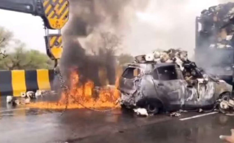 കൂട്ടിയിടിയെത്തുടര്ന്ന് കാറിലുണ്ടായിരുന്ന എല്പിജി കിറ്റ് പൊട്ടിത്തെറിക്കുകയായിരുന്നു. ട്രക്കിലുണ്ടായ പഞ്ഞിയിലേക്ക് തീ ആളിപ്പടരുകയും ചെയ്തു. നാട്ടുകാര് രക്ഷാപ്രവര്ത്തനം നടത്താന് ശ്രമിച്ചെങ്കിലും കാറിന്റെ ഡോര് തുറക്കാനായില്ല. ഇതോടെ കാര് പൂര്ണമായും കത്തി നശിക്കുകയായിരുന്നു. യാത്രക്കാര് സഹായത്തിനായി നിലവിളിച്ചെങ്കിലും രക്ഷപ്പെടുത്താന് സാധിച്ചില്ലെന്ന് ദൃക്സാക്ഷിയായ രാംനിവാസ് സൈനി പറഞ്ഞു. ഫയര്ഫോഴ്സെത്തി തീ അണച്ചപ്പോഴേക്കും ഏഴുപേരും മരിച്ചിരുന്നു. അപകടത്തിന് പിന്നാലെ ട്രക്ക് ഡ്രൈവറും സഹായിയും സംഭവസ്ഥലത്ത് നിന്ന് രക്ഷപ്പെട്ടു.
