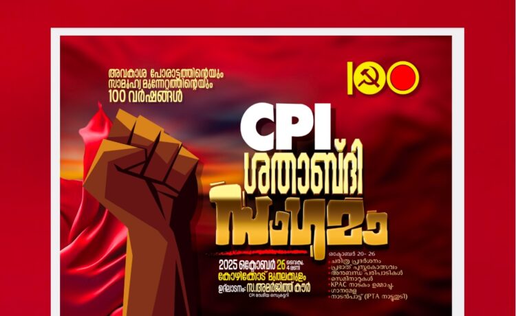 കോഴിക്കോട്: സിപിഐ രൂപീകരണത്തിന്റെ നൂറാം വാർഷികത്തിന്റെ ഭാഗമായുള്ള ശതാബ്ദി ആഘോഷ പരിപാടികൾക്ക് നാളെ കോഴിക്കോട് തുടക്കമാവും. മുതലക്കുളത്ത് പ്രത്യേകം സജ്ജമാക്കിയ വേദിയിൽ ചരിത്രപ്രദർശനം, പുസ്തകോത്സവം, നാടകം, നാടൻപാട്ട്, ഗാനമേള, വിവിധ സെമിനാറുകൾ ഉൾപ്പെടെ വൈവിധ്യമാർന്ന പരിപാടികളാണ് നടക്കുക. ശതാബ്ദി സംഗമം 26 ന് പാർട്ടി ദേശീയ സെക്രട്ടറി അമർജിത്ത് കൗർ ആണ് ഉദ്ഘാടനം ചെയ്യുക. നാളെ രാവിലെ 9.30 ന് പ്രഭാത് പുസ്തകോത്സവം സംസ്ഥാന അസി. സെക്രട്ടറി പി പി സുനീർ എം പി ഉദ്ഘാടനം ചെയ്യും. കെ കെ ബാലൻ അധ്യക്ഷത വഹിക്കും. വൈകീട്ട് അഞ്ചിന് ദേശീയ സെക്രട്ടേറിയറ്റ് അംഗം അഡ്വ. കെ പ്രകാശ് ബാബു ചരിത്ര പ്രദർശനം ഉദ്ഘാടനം ചെയ്യും. ഇ കെ വിജയൻ എംഎൽഎ അധ്യക്ഷത വഹിക്കും.