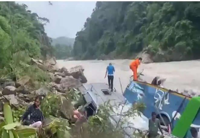 ഇന്ത്യയില്‍ നിന്ന് നേപ്പാളിലേക്ക് പോയ ബസ് നദിയിലേക്ക് മറിഞ്ഞ് 14 മരണം