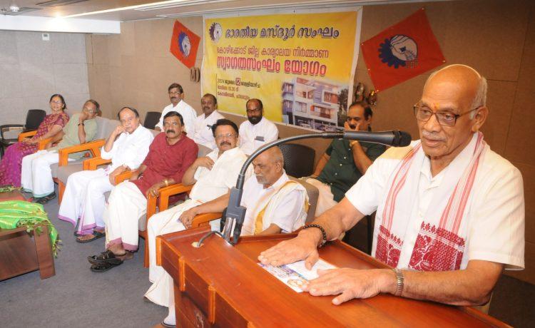 കോഴിക്കോട്: അർപ്പണമനോഭാവമുള്ള തൊഴിലാളികളാണ് രാജ്യത്തിന്റെ പുരോഗതിക്ക് കരുത്തേകുന്നതെന്ന് ബിഎംഎസ് ദേശീയ സെക്രട്ടറി വി. രാധാകൃഷ്ണൻ പറഞ്ഞു. തൊഴിൽ ആരാധനയാണെന്ന കാഴ്ചപ്പാടോടെ സ്വതന്ത്രമായി പ്രവർത്തിക്കുന്ന ലോകത്തിലെ തന്നെ ഏറ്റവും വലിയ തൊഴിലാളി സംഘടനയാണ് ബിഎംഎസ്. ഒരു കോടി അറുപത്തിനാല് ലക്ഷത്തിൽ പരം അംഗങ്ങൾ ഉള്ള സംഘടനയായി ഭാരതീയ മസ്ദൂർ സംഘം വളർന്നു കഴിഞ്ഞു എന്ന് അദ്ദേഹം പറഞ്ഞു. ബിഎംഎസ് സ്ഥാപകനായ ദത്തോപാന്ത് ഠേംഗ്ഡിയുടെ പേരിൽ കോഴിക്കോട് നിർമ്മിക്കുന്ന കെട്ടിടത്തിന്റെ പൂർത്തീകരണത്തിന് വേണ്ടി രൂപീകരിച്ച സ്വാഗതസംഘത്തിന്റെ പ്രഥമ യോഗം ഉദ്ഘാടനം ചെയ്ത് സംസാരിക്കുകയായിരുന്നു അദ്ദേഹം. കോഴിക്കോട് കേസരി ഭവനിലെ പരമേശ്വരം ഹാളിൽ ചേർന്ന യോഗത്തിൽ സ്വാഗതസംഘം ചെയർമാൻ ആചാര്യ എ. കെ. ബി. നായർ അധ്യക്ഷത വഹിച്ചു.
