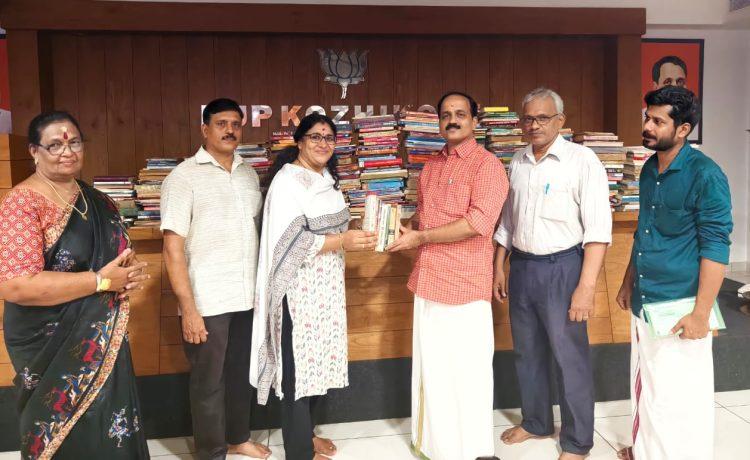 (പുസ്തകങ്ങള് ലൈബ്രറിയിലേക്ക് നല്കുന്നതിനായി കഴിഞ്ഞദിവസം അനുരാധയെ ഏല്പിച്ചിരുന്നു).ഇന്റലക്ച്വല് സെല് ജില്ലാ സഹകണ്വീനര് ടി.കെ. സുധാകരൻ, ഓഫീസ് സെക്രട്ടറി പി.അർജുൻ,മഹിളാ മോര്ച്ച ജില്ലാ വൈസ്പ്രസിഡന്റ് ശോഭ സുരേന്ദ്രൻ, രമേഷ് തായാട്ട് എന്നിവർ സന്നിഹിതരായിരുന്നു.