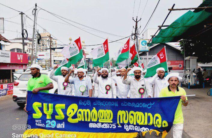 കോഴിക്കോട്: ലഹരി പരിഹാരമല്ല പാതകമാണ്.എന്ന പ്രമേയത്തില് എസ് വൈ എസ് ജില്ലാ കമ്മിറ്റിയുടെ ആഭിമുഖ്യത്തില് ഉണര്ത്തു സഞ്ചാരം പദയാത്ര നടത്തി. അരീക്കാട്, ചേവായുര്, വെസ്റ്റ്ഹില് എന്നിവിടങ്ങളില് നിന്നാരംഭിച്ച യാത്ര മുതലക്കുളത്ത് സമാപിച്ചു. അസിസ്റ്റന്റെ എക്സൈസ് കമ്മീഷണര് എം സുഗുണന്, കേരള മുസ്ലിം ജമാഅത്ത് ജില്ലാ പ്രസിഡന്റ് ടി.കെ അബ്ദുറഹ്മാന് ബാഖവി , ജനറല് സെക്രട്ടറി ജി അബൂബക്കര് എന്നിവര് ഉദ്ഘാടനം ചെയ്തു. എസ് വൈ എസ് ജില്ലാ ജനറല് സെക്രട്ടറി കെ.അബ്ദുല് കലാം മാവൂര്, ഫിനാന്സ് സെക്രട്ടറി മുനീര് സഖാഫി ഓര്ക്കാട്ടേരി, അബ്ദുല് ജലീല് സഖാഫി കടലുണ്ടി പദയാത്രക്ക് നേതൃത്വം നല്കി. ലഹരി വിരുദ്ധ ബോധവത്കരണത്തിന്റെ ഭാഗമായി ജില്ലയിലെ 500 ഓളം കേന്ദ്രങ്ങളില് ലഹരി വിരുദ്ധ പ്രഭാഷണം, ലഘുലേഖ വിതരണം, ജാഗ്രത സമിതി രൂപീകരണം എന്നിവ നടന്നു.