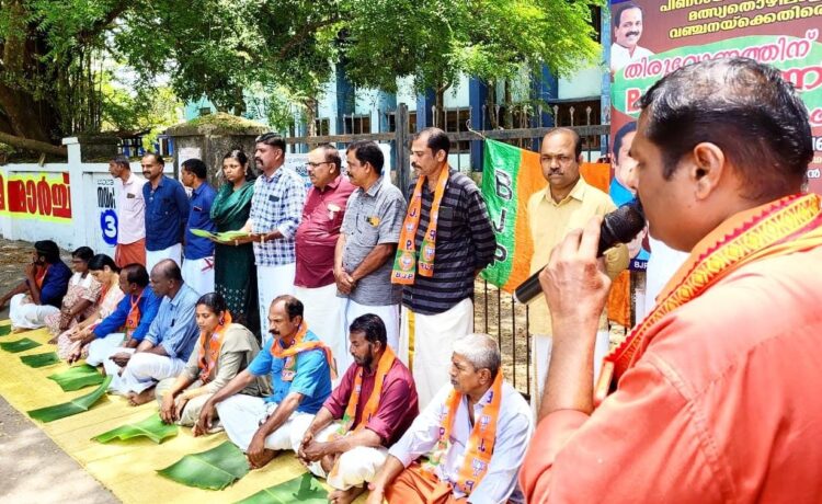 തിരുവേണത്തിന് ഫിഷറീസ് ഡപ്പൂട്ടി ഡയക്ടറുടെ ഓഫീസിനു മുന്നിൽ സംഘടിപ്പിച്ച പട്ടിണി സമരം ബി.ജെ.പി. നടക്കാവ് മണ്ഡലം പ്രസിഡണ്ട് കെ.ഷൈബു ഉദ്ഘാടനം ചെയ്തു.