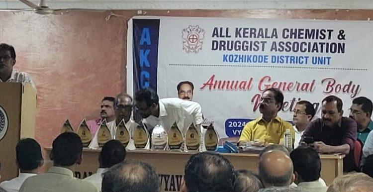 ആൾ കേരള കെമിസ്ട്രൂ ആൻഡ് ഡ്രഗ് അസോസിയേഷൻ (AKCDA ) കോഴിക്കോട് ജില്ല വാർഷികവും പൊതുയോഗവും നടത്തി. പ്ലസ് ടു, എസ് എസ് ൽ സി പരിഷയിൽ ഉന്നത വിജയം നേടിയ കുട്ടികൾക്ക് ഉള്ള അനുമോദനവും കോഴിക്കോട് വ്യപാരഭവൻ ഓഡിറ്റോറിയത്തിൽ നടന്നു. സംസ്ഥാന പ്രസിഡന്റ് എ എൻ മോഹൻ ഉദ്ഘാടനം ചെയ്തു. ജില്ല പ്രസിഡന്റ് ടി. പി കൃഷ്ണൻ അധ്യക്ഷത വഹിച്ച യോഗത്തിൽ ഔഷധ മേഖലയിലെ പ്രതിസന്ധികൾ എന്ന വിഷയത്തെ കുറച്ചു അഡീഷണൽ ഡ്രഗ് കൺട്രോളർ ഷാജി എം വർഗീസ് സംസാരിച്ചു. വ്യജ മരുന്നുകൾക്കെതിരെ കേരള, കേന്ദ്ര സർക്കാർ അടിയന്തരമായി ഇടപെടണമെന്ന് യോഗം ഏകകണ്ഠമായി ആവിശ്യപ്പെട്ടു.