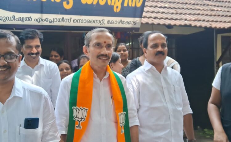ജില്ലാ പ്രസിഡന്റ് അഡ്വ.വി.കെ സജീവന്, വൈസ് പ്രസിഡൻ്റ് അഡ്വ.കെ.വി സുധീർ എന്നിവർക്കൊപ്പമാണ് എം.ടി.രമേശ് കോടതിയിലെത്തിയത്.