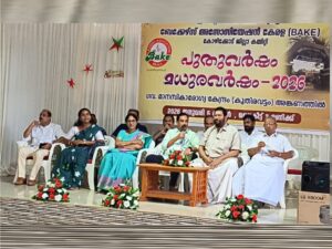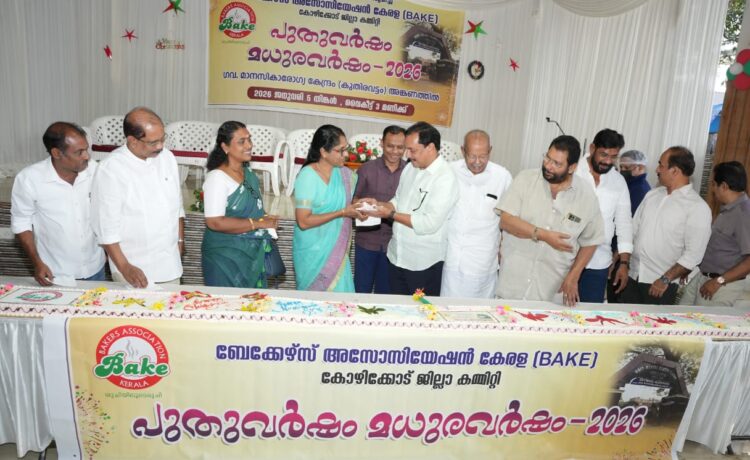 കോഴിക്കോട്:ബേക്കേഴ്സ് അസോസിയേഷൻ കേരള കോഴിക്കോട് ജില്ലാ കമ്മറ്റി നേതൃത്വത്തിൽ പുതുവത്സര ആഘോഷ പരിപാടികൾ സംഘടിപ്പിച്ചു. കുതിരവട്ടം സർക്കാർ മാനസിക ആരോഗ്യ കേന്ദ്രത്തിൽ പുതുവർഷം മധുര വർഷം – 2026 എന്ന പേരിൽ സംഘടിപ്പിച്ച പരിപാടിയിൽ മനുഷ്യാവകാശ കമ്മീഷൻ ജുഡീഷ്യൽ അംഗം കെ.ബൈജു നാഥ് നീളൻ കേക്ക് മുറിച്ച് ആശുപത്രി സൂപ്രണ്ട് ഡോ.സരളയ്ക്ക് നൽകി ഉദ്ഘാടനം ചെയ്തു.ബേക്കഴ്സ്. അസോസിയേഷൻ കേരള മുൻ സംസ്ഥാന ട്രഷറർ എം.പി രമേഷ് അധ്യക്ഷം വഹിച്ചു.വാർഡ് കൗൺസിലർ ബിന്ദു ഉദയകുമാർ, ഷെവലിയർ സി.ഇ ചാക്കുണ്ണി, ബേക്കേഴ്സ് അസോസിയേൻ കേരള ജില്ലാ പ്രസിഡണ്ട് ദേവദാസ് തായാട്ട്.പൊതു പ്രവർത്തകൻ ആനന്ദ മണി, ബേക്കേഴ് അസോസിയേഷൻ കേരള ജില്ല ജനറൽ സെക്രട്ടറി സലാം സ്റ്റാൻഡേർഡ്, സെക്രട്ടറിമാരായ എ.കെ ജുനൈസ്, കെ.ആർ രഞ്ജിത്ത് , ട്രഷറർ ശോജിൽ അശോക് എന്നിവർ സംസാരിച്ചു.