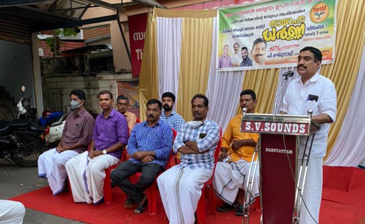 ബേപ്പൂർ:പെട്രോൾ ,ഡീസൽ സംസ്ഥാന സർക്കാർ നികുതി കുറയ്ക്കാത്തത് കേരളീയരോടുള്ള വെല്ലുവിളിയാണെന്ന് ബി.ജെ.പി സംസ്ഥാന വൈസ് പ്രസിഡണ്ട് പി.രഘുനാഥ് ആരോപിച്ചു.ഇന്ധന നികുതി കുറയ്ക്കാത്ത സംസ്ഥാന സർക്കാറിൻ്റെ നിലപാടിൽ പ്രതിഷേധിച്ച് ബി ജെ പി ബേപ്പൂർ മണ്ഡലം കമ്മിറ്റി സംഘടിപ്പിച്ച സായാഹ്ന ധർണ്ണ ഉദ്ഘാടനം ചെയ്യുകയായിരുന്നു അദ്ദേഹം.ജനദ്രോഹ നടപടികളും അഴിമതിയുമാണ് പിണറായി സർക്കാറിൻ്റെ മുഖമുദ്രയെന്നും രഘുനാഥ് കുറ്റപ്പെടുത്തി.മത തീവ്രവാദ സംഘടനകൾക്ക് എല്ലാവിധ ഒത്താശയും പിണറായി ചെയ്തു കൊടുക്കുന്നത് രാജ്യദ്രോഹ നടപടിയാണെന്ന് അദ്ധേഹം ഓർമ്മിപ്പിച്ചു.സായാഹ്ന ധർണ്ണയിൽ മണ്ഡലം പ്രസിഡണ്ട് ഷിനു പിണ്ണാണത്ത് അദ്ധ്യക്ഷത വഹിച്ചു.OBC മോർച്ച ജില്ല ജനറൽ സിക്രട്ടറി ടി.എം അനിൽകുമാർ,ഗിരീഷ് പി മേലേടത്ത് , സി.സാബുലാൽ,പി.സി ആനന്ദറാം,ഷിംജീഷ് പാറപ്പുറം,രോഹിത്ത് കമ്മലാട്ട് തുടങ്ങിയവർ പ്രസംഗിച്ചു.