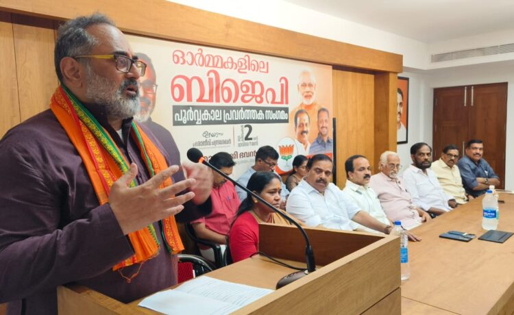 കോഴിക്കോട്: ബിജെപി ജില്ലാ കമ്മിറ്റിയുടെ നേതൃത്വത്തിൽ ബിജെപി പൂർവ്വകാല പ്രവർത്തക സംഗമം മാരാർജി ഭവനിൽ സംഘടിപ്പിച്ചു. നിരവധി പ്രവർത്തകർ പങ്കെടുത്ത പ്രൗഢോജ്വലസംഗമം കേന്ദ്ര മന്ത്രി രാജീവ് ചന്ദ്രശേഖര് ഉദ്ഘാടനം ചെയ്തു. ലോകത്തെ ഏറ്റവും വലിയ പാർട്ടിയായി ബിജെപി ഉയർന്നതിനു പിന്നിൽ മുതിര്ന്ന തലമുറ അനുഷ്ഠിച്ച ത്യാഗവും സേവന താല്പര്യവുമാണെന്ന് അദ്ദേഹം പറഞ്ഞു. ഇന്ത്യ ലോക ശക്തികളിലൊന്നായി വളരുമ്പോള് അതിനെതിരെ പ്രവര്ത്തിക്കുന്നവര് രാജ്യത്തിനകത്തും പുറത്തുമുണ്ട്. അത്തരം ശക്തികളെ ചെറുത്ത് തോൽപ്പിക്കണം. ഹമാസ് പോലുള്ള തീവ്രവാദ ശക്തികള്ക്ക് സിപിഎം വിസയില്ലാതെ രാജ്യത്തേക്ക് പ്രവേശനം നൽകി ചുവപ്പു പരവതാനി വിരിച്ചു നൽകുകയാണ്. എന്നാൽ ബിജെപി ഇത്തരം നീക്കങ്ങൾക്കെതിരെ ശക്തമായി പോരാടുമെന്നും അദ്ദേഹം പറഞ്ഞു.