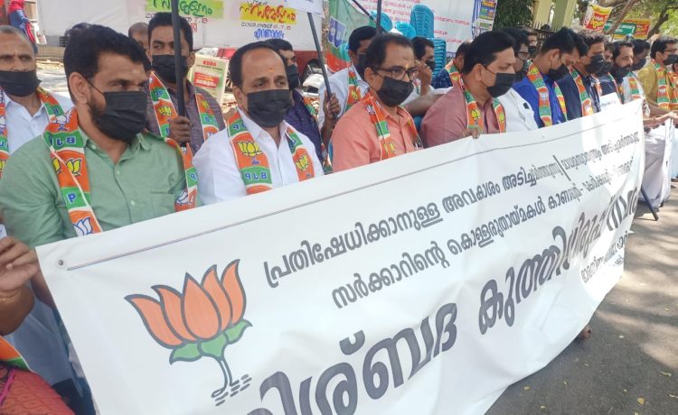 കോഴിക്കോട് : അധിക നികുതി,സ്ത്രീ പീഡനം,ദളിത് പീഡനം,മയക്കുമരുന്ന് മാഫിയ തുടങ്ങിയ വിഷയങ്ങളില് അനങ്ങാപ്പാറ നയം സ്വീകരിക്കുന്ന സംസ്ഥാന സര്ക്കാരിന്റെ ഫാസിസ്റ്റു നയത്തിനെതിരെ ബിജെപി ജില്ലാകമ്മറ്റിയുടെ നേതൃത്വത്തില് കലക്ട്രേറ്റ് പടിക്കല് മൗന