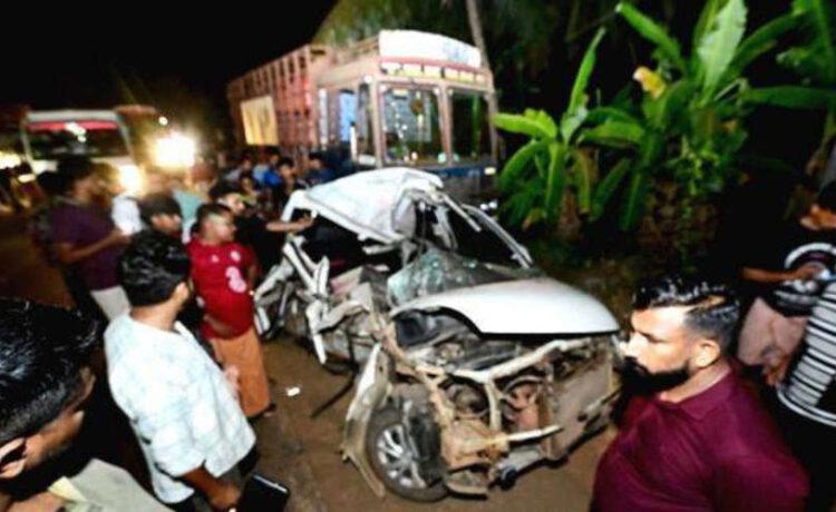സുധാകരനും കുടുംബവും മകനെ കോഴിക്കോട് സി.എ കോഴ്സിന് ചേര്ത്ത് ഹോസ്റ്റലിലാക്കി തിരികെ വരികയായിരുന്നു. കണ്ണൂരെത്തിയപ്പോള് ഇവര് സഞ്ചരിച്ച കാറിന് പിന്നില് മറ്റൊരു ലോറി ഇടിക്കുകയും നിയന്ത്രണം വിട്ട വാഹനം എതിരെ വരികയായിരുന്ന ഗ്യാസ് ലോറിയില് ഇടിച്ചെന്നുമാണ് പ്രാഥമിക നിഗമനം. കാറിലുണ്ടായിരുന്നവരെ പുറത്തെടുത്തത് വാതിലുകള് വെട്ടിപ്പൊളിച്ചാണ് .