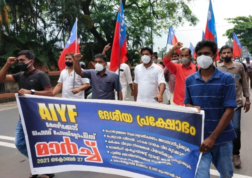 കോഴിക്കോട്: പൊതുമേഖലകൾ വിറ്റഴിക്കുന്നതിലൂടെ കേന്ദ്രസർക്കാർ രാജ്യം കോർപ്പറേറ്റുകൾക്ക് തീറെഴുതുകയാണെന്ന് എ.ഐ.വൈ.എഫ് സംസ്ഥാന ജോ: സെക്രട്ടറി അഡ്വ: പി.ഗവാസ് പറഞ്ഞു. പൊതുമേഖല സ്വകാര്യവത്കരിക്കരുത്, ഇന്ധന-പാചകവാതക വില കുറയ്ക്കുക, ഭഗത് സിംഗ് എംപ്ലോയ്മെൻ്റ് ഗ്യാരൻറി ആക്ട് നടപ്പാക്കുക, കർഷക വിരുദ്ധ നിയമങ്ങൾ പിൻവലിക്കുക, പുതിയ തൊഴിലവസരങ്ങൾ സൃഷ്ടിക്കുക- ഒഴിവുകൾ നികത്തുക, തൊഴിലില്ലായ്മാ വേതനം 10,000 രൂപയായി വർദ്ധിപ്പിക്കുക എന്നീ ആവശ്യങ്ങൾ ഉയർത്തിയുള്ള ദേശീയ പ്രക്ഷോഭത്തിൻ്റെ ഭാഗമായി എ.ഐ.വൈ.എഫ് ജില്ലാ കമ്മിറ്റിയുടെ നേതൃത്വത്തിൽ സംഘടിപ്പിച്ച കോഴിക്കോട് ഹെഡ് പോസ്റ്റ് ഓഫീസ് മാർച്ച് ഉദ്ഘാടനം ചെയ്യുകയായിരുന്നു ഗവാസ്. പെട്രോൾ-ഡീസൽ വില...