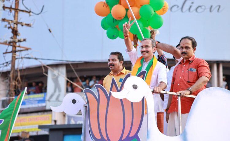 രാവിലെ എട്ടുമണിക്ക് നടുവണ്ണൂരിൽ നിന്നാരംഭിച്ച റോഡ് ഷോ ബാലുശ്ശേരി, നന്മണ്ട, കാക്കൂർ, കുമാരസാമി, നരിക്കുനി, പൂനൂർ, താമരശ്ശേരി, കൊടുവള്ളി, കുന്ദമംഗലം, കുറ്റിക്കാട്ടൂർ, പന്തീരങ്കാവ്, മീഞ്ചന്ത, പുതിയറ, മലാപറമ്പ്, പുതിയാപ്പ, തുടങ്ങി വിവിധയിടങ്ങളിലൂടെ സഞ്ചരിച്ചാണ് കോഴിക്കോട് പാളയം മാർക്കറ്റിന് സമീപം എത്തിച്ചേർന്നത്. നൂറ് കണക്കിന് പ്രവർത്തകരുടെ അകമ്പടിയോടെയും, ബൈക്ക് റാലിയോടെയും ആയിരുന്നു റോഡ് ഷോ.