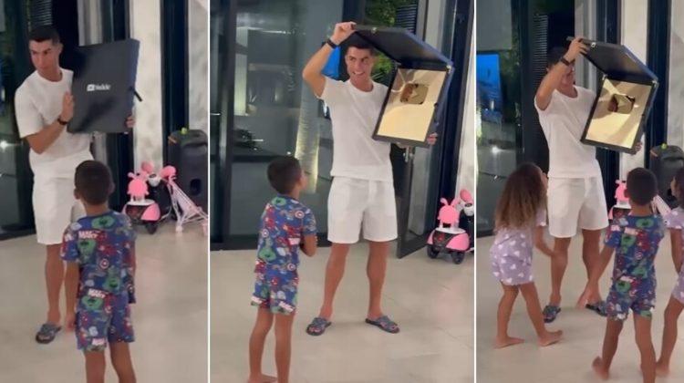 ഗോൾഡൺ പ്ലേബട്ടൺ തുറക്കുന്നതിന്റെ വീഡിയോയും താരം ചാനലിലൂടെ പങ്കുവെച്ചു. തന്റെ കുടുംബത്തിനൊപ്പമാണ് ഗോൾഡൺ പ്ലേബട്ടൺ തുറന്നത്. റൊണാഡോയുടെ മക്കൾ സന്തോഷത്തോടെ തുള്ളിച്ചാടുന്നതും വീഡിയോയിൽ കാണാം.‘എൻ്റെ കുടുംബത്തിന് ഒരു സമ്മാനം. എല്ലാ സബ്സ്ക്രൈബേഴ്സിനും നന്ദി!’, താരം കുറിച്ചു.