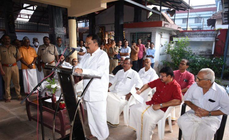 ക്ഷേത്രം പ്രസിഡണ്ട് എ.പി. സായ് നാരായണൻ അദ്ധ്യക്ഷത വഹിച്ചു എ.പി. കൃഷ്ണകുമാർ പൊന്നാട അണിയിച്ചു പി.ആർ. സുനിൽ സിംഗ്, പി.എസ്.ജയപ്രകാശ് കുമാർ , പി.എൻ. ഗോപി കുമാർ , കെ.വി.ശ്രീജേഷ്, ടി.എ. മുരളീധരൻ , ടി.വി.നാരായണൻ , കെ.ശങ്കരൻ പിള്ള എന്നിവർ സംസാരിച്ചു