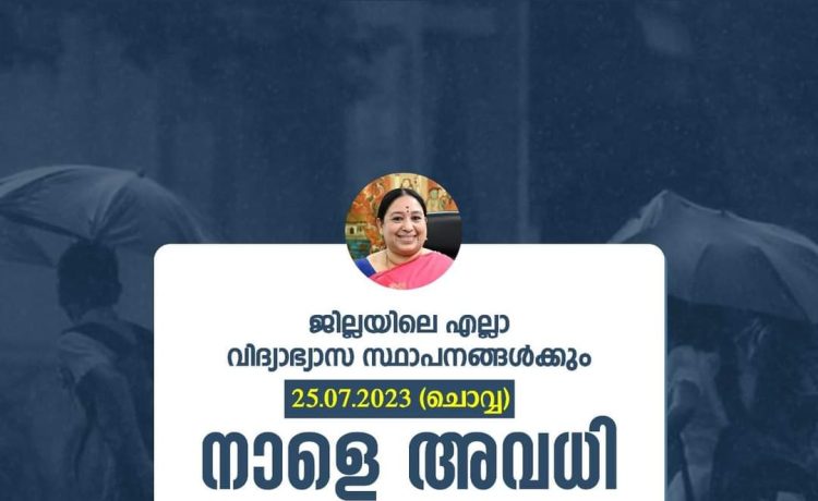 കോഴിക്കോട്:ജില്ലയിൽ മഴ തുടരുന്നതിനാലും പലയിടങ്ങളിലായി വെള്ളക്കെട്ടും ശക്തമായ കാറ്റുമുള്ളതിനാലും, നദീതീരങ്ങളിൽ ക്രമാതീതമായി വെള്ളം ഉയരുന്ന സാഹചര്യം നിലനിൽക്കുന്നതിനാലും പ്രൊഫഷണൽ കോളേജ് ഉൾപ്പെടെയുള്ള എല്ലാ വിദ്യാഭ്യാസ സ്ഥാപനങ്ങൾക്കും നാളെയും (ജൂലൈ 25) അവധിയാണ്. ജില്ലയിലെ അങ്കണവാടികള്ക്കും അവധി ബാധകമാണ്. മുൻകൂട്ടി നിശ്ചയിച്ച പരീക്ഷകളിൽ മാറ്റമില്ല.