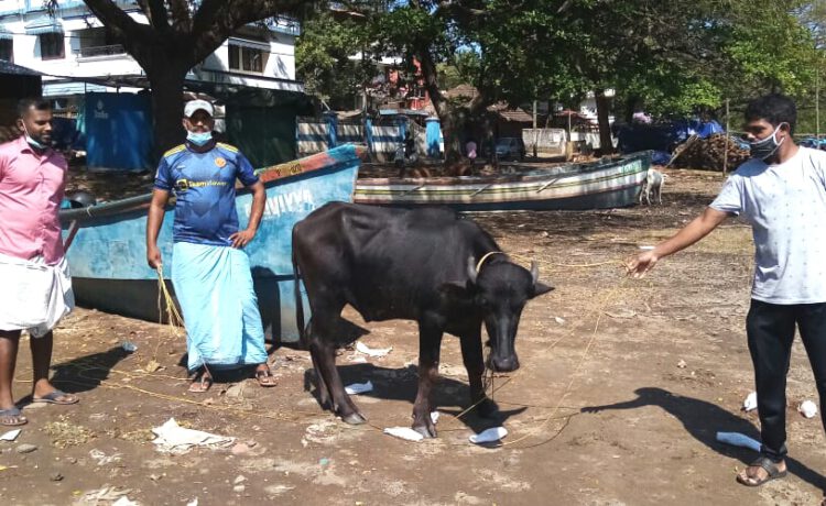 കോതി അഴീമുഖത്ത് നിന്ന് മത്സ്യബന്ധനത്തിനായി പുറപ്പെട്ട അറഫ, സാല റിസ എന്നീ രണ്ട് ഫൈബർ വള്ളത്തിലെ തൊഴിലാളികളായ എ.ടി. റാഷി, എ.ടി. ഫിറോസ്, എ.ടി. സക്കീർ, എ.ടി.ദിൽഷാദ് എന്നിവരാണ് അവശനിലയിലായ പോത്തിനെ കടലിൽ കാണുന്നത്. പോത്ത് കടലിൽ മുങ്ങാതിരിക്കാൻ രണ്ട് കന്നാസുകൾ പോത്തിന്റെ ശരീരത്തിൽ കെട്ടി രണ്ട് വള്ളങ്ങൾക്കും ഇടയിലാക്കി പതുക്കെ നീന്തിച്ചാണ് ഇവർ കരയ്ക്ക് എത്തിച്ചത്.