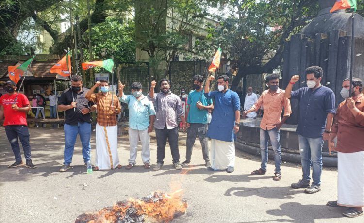 ഇന്ധന നികുതി കുറയ്ക്കാത്ത കേരള സർക്കാർ നടപടിയിൽ പ്രതിഷേധവുമായി യുവമോർച്ച