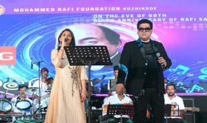 കോഴിക്കോട് : അനശ്വര ഗായകൻ മുഹമ്മദ് റഫിയുടെ മരണമില്ലാത്ത ശബ്ദം അറബിക്കടലിന്റെ തീരത്ത് വീണ്ടും പുനർജനിച്ചത് ആസ്വാദർക്ക് നവ്യാനുഭവമായി.മുഹമ്മദ് റഫി ഫൗണ്ടേഷൻ കോഴിക്കോട് കടപ്പുറത്ത് സംഘടിപ്പിച്ച റഫി നൈറ്റിലാണ്, ആസ്വാദകഹൃദയങ്ങളിൽ റഫി ഗാനങ്ങൾ പെയ്തിറങ്ങിയത്. റഫി ഫെയിം മുഹമ്മദ് സലാമത്ത് , സംഗീത മലേക്കർ എന്നിവരുടെ നേതൃത്വത്തിൽ ഒരു കൂട്ടം ഗായകരാണ് ബീച്ച് ഫ്രീഡം സ്വകയർ സ്‌റ്റേജിൽ ഗാന വിരുന്ന് ഒരുക്കിയത് .മുഹമ്മദ് റഫിയുടെ 98 ആം ജന്മദിനാഘോഷത്തോടനുബന്ധിച്ചായിരുന്നു റഫി ഫൗണ്ടേഷൻ മെഗാ റഫി നൈറ്റ് സംഘടിപ്പിച്ചത്.സംഗീത സംവിധായകൻ ലക്ഷ്മികാന്ത് – പ്യാരേലാൽ ടീമിലെ സ്ഥിരം ഗായകനായ സലാമത്ത് (മുംബൈ) ആദ്യമായാണ് കോഴിക്കോട് ആലപിക്കാൻ എത്തിയത്. ഒപ്പം മുംബൈയിൽ നിന്നു തന്നെയുള്ള സംഗീതാ മലേക്കറാണ് ഗായികയായും എത്തിയത്.