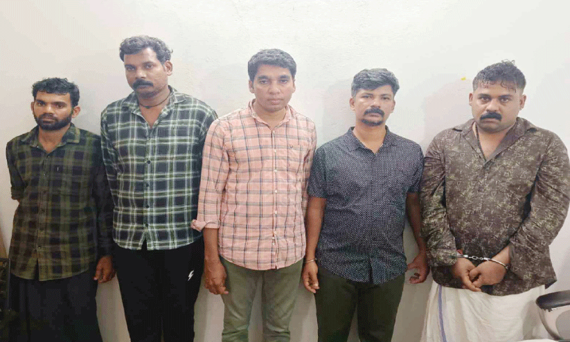 കവർച്ചയുടെ മുഖ്യ സൂത്രധാരൻ മാനിപുരത്ത് താമസിക്കുന്ന പാലക്കാട് സ്വദേശിയും കൊടുവള്ളിയിലെ സ്വർണ വ്യാപാരിയുമായ പെരുവമ്പ പെരുംകുളങ്ങര വീട്ടിൽ രമേശൻ (42), തൃശൂർ സ്വദേശികളായ വെമ്പനാട് പാവറട്ടി മൂക്കൊല വീട്ടിൽ എം.വി. വിപിൻ (35), പാലുവയ് പെരിങ്ങാട്ട് പി.ആർ. വിമൽ (38), പാവറട്ടി മരുത്വാ വീട്ടിൽ എം.സി. ഹരീഷ് (38), പാലക്കാട് തത്തമംഗലം ചിങ്ങാട്ട് കുളമ്പ് ലതീഷ് (43) എന്നിവരെയാണ് ശനിയാഴ്ച തൃശൂർ, പാവറട്ടി എന്നിവിടങ്ങളിൽനിന്ന് കോഴിക്കോട് റൂറൽ എസ്.പി നിധിൻ രാജിന്റെ കീഴിലുള്ള അന്വേഷണസംഘം അറസ്റ്റ് ചെയ്തത്.