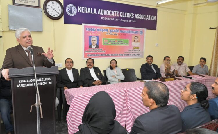 കോഴിക്കോട്:കേരളാ അഡ്വക്കറ്റ് ക്ലർക്ക്സ് അസോസിയേഷൻ കോഴിക്കോട് യൂണിറ്റ് കമ്മറ്റിയുടെ നേതൃത്വത്തിൽ ഹൈക്കോടതി ജസ്റ്റിസ് ദേവൻരാമചന്ദ്രന് സ്വീകരണം നൽകി.യൂണിറ്റ് പ്രസിഡണ്ട് എ. അനിൽകുമാറിന്റെ അധ്യക്ഷതയിൽ കെ എ സി എ ഹാളിൽ വച്ച് നടന്ന ചടങ്ങ് കോഴിക്കോട് പ്രിൻസിപ്പൽ ജില്ലാ ജഡ്ജി വിഎസ് ബിന്ദുകുമാരി ഉദ്ഘാടനം ചെയ്തു.