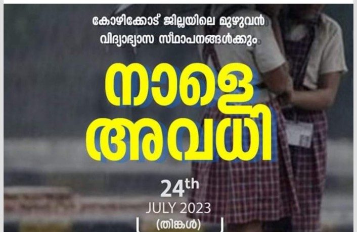 കോഴിക്കോട് ജില്ലയിൽ വിദ്യാഭ്യാസ സ്ഥാപനങ്ങൾക്ക് നാളെ (24/07/23) അവധി