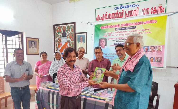 കാളാണ്ടിത്താഴം ദർശനം ഗ്രന്ഥാലയം എം എൻ സത്യാർത്ഥി ഹാളിൽ നടന്ന ചടങ്ങിൽ പ്രസിഡന്റ് പി സിദ്ധാർത്ഥൻ അധ്യക്ഷനായി. വായനാ പക്ഷാചരണത്തിലെ ഒന്നാം കഥ മർമ്മരങ്ങളുടെ രചയിതാവ് എം ഗോകുൽദാസിനെ ഉൺമ മോഹന്റെ ‘ കടലിൽ കടു കല്ല, കടുകിൽ കടലാണ് ‘ സീരീസിലെ അഞ്ചാം വോള്യം സത്യത്തിന്റെ മുഖങ്ങൾ നല്കി സെക്രട്ടറി എം എ ജോൺസൺ ആദരിച്ചു.