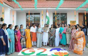 മഹിളാ മോർച്ച കോഴിക്കോട് ജില്ലാ കമ്മിറ്റിയുടെ ആഭിമുഖ്യത്തിൽ G20 ലോഗോയുടെ രംഗോലി വരച്ചു. മഹിളാ മോർച്ച കോഴിക്കോട് ജില്ലാ പ്രസിഡൻ്റ് അഡ്വ. രമ്യ മുരളി അദ്ധ്യക്ഷത വഹിച്ചു.