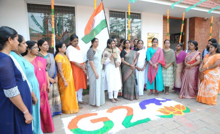 കോഴിക്കോട്:ഭാരതം G 20 രാഷ്ട്രങ്ങളുടെ 18-ാമത് യോഗത്തിന്റെ അദ്ധ്യക്ഷത വഹിക്കുന്ന സന്ദർഭത്തിൽ ദേശീയ പതാകയുമായി സ്വാഗതമോതി,ആശംസകളർപ്പിച്ച് മഹിളാ മോർച്ച കോഴിക്കോട് ജില്ലാ കമ്മിറ്റി.