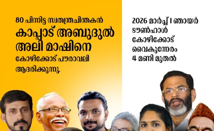 കോഴിക്കോട്: 80 വയസ് പിന്നിട്ട സ്വതന്ത്ര ചിന്തകൻ കാപ്പാട് അബ്ദുൽ അലി മാസ്റ്റരെ കോഴിക്കോട് പൗരാവലി ആദരിക്കുന്നു. മാർച്ച് ഒന്നിന് വൈകീട്ട് നാലിന് കോഴിക്കോട് ടൗൺഹാളിലാണ് ചടങ്ങ്. 1943 ജനുവരി ആറിന് കോഴിക്കോട്ടെ പ്രശസ്തമായ പണ്ഡിത കുടുംബത്തിലായിരുന്നു മാസ്റ്ററുടെ ജനനം. കാപ്പാട്ടെ ഖാസി ബീരാൻ കുട്ടി മുസ്ലിയാരുടെ പേരക്കുട്ടിയും വടക്കേതിൽ മമ്മിക്കുട്ടി മുസ്ലിയാരുടെ മകനുമായ അദ്ദേഹം, ചെറുപ്പത്തിലേ മത പഠനം തുടങ്ങിയിരുന്നു. ദീർഘകാലത്തെ ദർസ് പഠനം ഇസ്ലാമിക നിയമങ്ങളിൽ അദ്ദേഹത്തിന് അഗാധമായ പാണ്ഡിത്യം നൽകി. എന്നാൽ, 1970-ൽ സഹഅധ്യാപകനായ ഇ ശങ്കരനുമായുണ്ടായ സൗഹൃദം അദ്ദേഹത്തിന്റെ ജീവിതത്തിൽ വലിയൊരു വഴിത്തിരിവായി. മതം അന്ധമായി വിശ്വസിക്കേണ്ട ഒന്നല്ലെന്നും അത് യുക്തിപൂർവ്വം വിശകലനം ചെയ്യപ്പെടേണ്ടതാണെന്നുമുള്ള തിരിച്ചറിവ് അദ്ദേഹത്തെ ഒരു സജീവ സ്വതന്ത്രചിന്തകനാക്കി മാറ്റി.