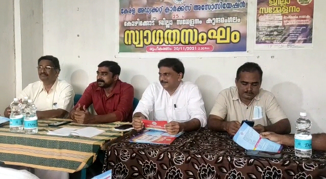 കുന്ദമംഗലം: കേരള അഡ്വക്കറ്റ് ക്ലർക്ക്സ് അസോസിയേഷൻ കോഴിക്കോട് ജില്ല സമ്മേളനം ജനുവരി 2ന് കുന്ദമംഗലത്ത് നടക്കുമെന്ന് സംഘാടക സമിതി വാർത്ത സമ്മേളനത്തിൽ അറിയിച്ചു ഞായറാഴ്ച രാവിലെ 10 മണിക്ക് പൊതുമരാമത്ത് ടൂറിസം വകുപ്പ് മന്ത്രി അഡ്വ. പി. എ മുഹമ്മദ് റിയാസ് ഉദ്ഘാടനം ചെയ്യും. സമ്മേളനത്തിൻ്റെ ഭാഗമായി അന്തരിച്ച കുന്ദമംഗലം കോടതിയിലെ അഡ്വ.ക്ലർക്കായിരുന്ന വി.പി വേലായുധൻ്റെ ഫോട്ടോ വെള്ളിയാഴ്ച വൈകുന്നേരം ബാർ കൗൺസിൽ ഹാളിൽ അനാഛാദനം ചെയ്യും.