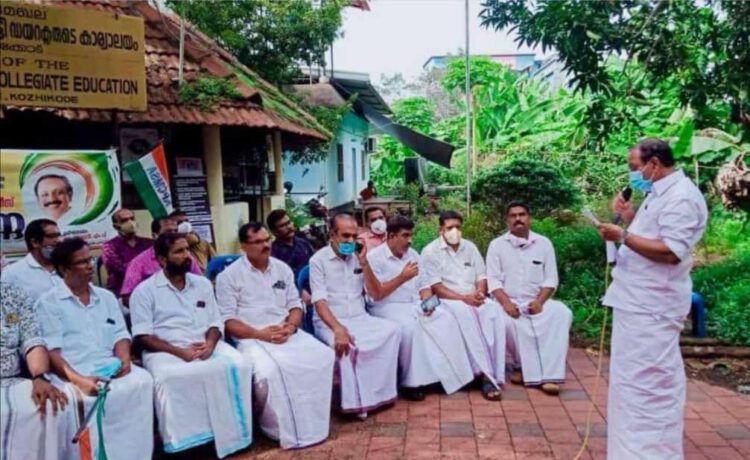 കോഴിക്കോട് ഉത്തരമേഖല കോളേജ് വിദ്യാഭ്യാസ ഡെപ്യുട്ടി ഡയറക്ടറുടെ കാര്യാലയത്തിന് മുന്നിൽ കെ.പി. സി .എം.എസ് എ ഉത്തരമേഖല കമ്മിറ്റി നടത്തിയ ധർണ്ണ സമരം ഉദ്ഘടനം ചെയ്ത് സംസാരിക്കുകയായിരുന്നു അദ്ദേഹം. മേഖല പ്രസിഡണ്ട് എ.രൂപേഷ് അധ്യക്ഷത വഹിച്ചു.സംസ്ഥാന പ്രസിഡണ്ട് കെ.പി ദിനേശൻ ഭാരവാഹികളായ സ്റ്റാലിൻ രാജഗിരി, സി.എച്ച് , പി.പി ദിപു, പ്രേംജി, കെ.എസ്.ഡി സി സി ജനറൽ സെക്രട്ടറി മമ്മദ് കോയ എൻ ജി ഒ സംസ്ഥാന സെക്രട്ടറി ഷിബു പ്രശാന്ത് കോറോം, എൻ.വി ശ്രീനിവാസൻ, കെ.പി.രാമകൃഷ്ണൻ എന്നിവർ സംസാരിച്ചു.ഇത് സംബന്ധിച്ച് ഡി ഡി ക്ക് നിവേദനവും നൽകി.