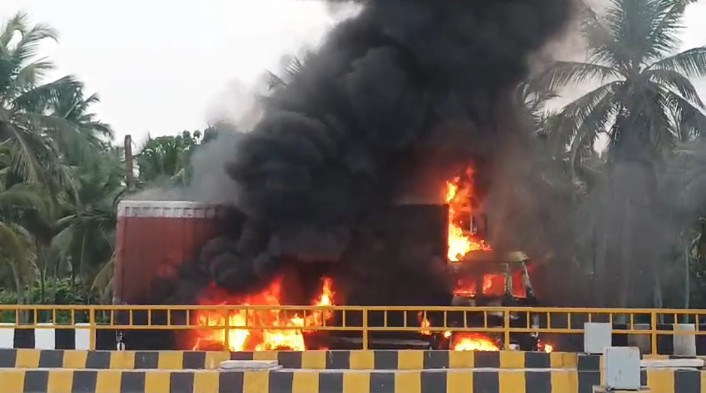 കോഴിക്കോട്:മഹാരാഷ്ട്രയിൽ നിന്നും യീസ്റ്റുമായി ആലുവയിലേക്ക് പോവുകയായിരുന്ന കണ്ടെയ്നർ ലോറിയാണ് കത്തി നശിച്ചത്.വൈകീട്ട് അഞ്ചിന് ടോൾ പ്ലാസക്ക് സമീപം നിർത്തിയ വണ്ടിയിൽ നിന്നും ഡ്രൈവർ ഇറങ്ങി ശുചി മുറിയിൽ പോയി വരുന്നതിനിടെയാണ് വാഹനത്തിന്റെ മുൻ വശത്ത് നിന്നും തീ ഉയരുന്നത് കണ്ടത്. ഉടൻ ടോൾ പ്ലാസ ജീവനക്കാർ ഫയർ സ്റ്റേഷനിൽ വിവരം അറിയിച്ചു.മീഞ്ചന്തയിൽ നിന്നും ബീച്ചിൽ നിന്നും അഗ്നി ശമന സേനാംഗങ്ങൾ എത്തി തീയണച്ചു.ഷോർട്ട് സർക്യൂട്ടാണ് തീ പടരാൻ കാരണമായി സംശയിക്കുന്നത്.ടയർ ഉൾപ്പെടെ പൊട്ടിതറിച്ചതിനാൽ ഇതു വഴിയുള വാഹനഗതാഗതം മണിക്കൂറോളം തടസപ്പെട്ടു.മൂന്ന് യൂണിറ്റ് ഫയർഫോഴ്സ് എത്തിയാണ് തീ പൂർണമായി നിയന്ത്രണ വിധേയമാക്കിയത്.