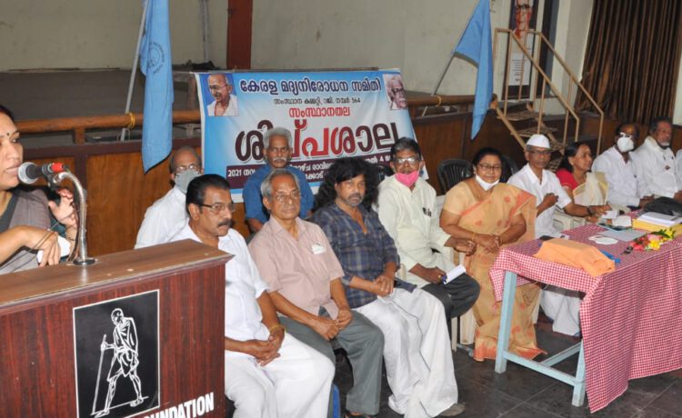 മദ്യ നിരോധന സമിതി സംസ്ഥാന വർക്കിംഗ് പ്രസിഡന്റ് പ്രൊഫ.ടി എം രവീന്ദ്രൻ അധ്യക്ഷത വഹിച്ചു. സംസ്ഥാന സർക്കാറിന്റെ മദ്യ നയത്തിനെതിരെ ശില്പശാലയിൽ രൂപപ്പെടുന്ന സമര രീതി വരും ദിവസങ്ങളിൽ അറിയിക്കുമെന്ന് പ്രൊഫ. ടി എം രവീന്ദ്രൻ പറഞ്ഞു.