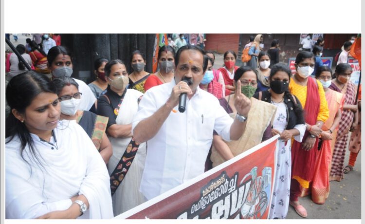 ഭക്ഷണത്തിൽ മതം കലർത്തരുത് എന്നത് തന്നെയാണ് പൊതു അഭിപ്രായം. മുഖ്യമന്ത്രിയുടെ വ്യാഖ്യാനം പദവിക്ക് നിരക്കുന്നതല്ല.പിണറായി സര്ക്കാറിന്റെ കീഴില് സ്വന്തം സഖാക്കളും,പോലീസും സ്ത്രീവിരുദ്ധത ആവര്ത്തിക്കുകയാണ്.ആലുവയിലെ മൊഫിയ പര്വീണയുടെ ആത്മഹത്യ ഇതിന്റെ ഒടുവിലത്തെ ഉദാഹരണമാണ്.മറ്റെല്ലാ സംസ്ഥാനങ്ങളും ഇന്ധനനികുതി കുറച്ചിട്ടും സംസ്ഥാനം സ്വീകരിച്ചത് ധിക്കാരപരമായ നിലപാടാണെന്നും സജീവന് പറഞ്ഞു.സംസ്ഥാനം ഇന്ധനവില കുറക്കാത്തതിലും,സ്ത്രീവിരുദ്ധ നിലപാടുകളിലും പ്രതിഷേധിച്ച് മഹിളാമോര്ച്ച കോഴിക്കോട് ജില്ലാകമ്മറ്റി കിഡ്സന് കോര്ണറില് സംഘടിപ്പിച്ച പ്രതിഷേധ സമരം ഉദ്ഘാടനം ചെയ്യുകയായിരുന്നു അദ്ദേഹം