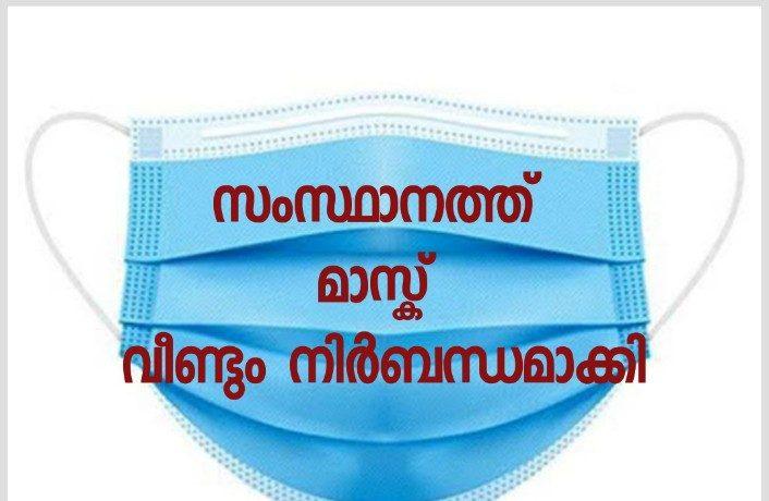 സംസ്ഥാനത്ത് മാസ്ക് വീണ്ടും നിർബന്ധമാക്കി