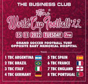 ആവേശമാകാൻ മിനി വേൾഡ് കപ്പ് ഫുട്ബോൾ ; ബിസിനസ് ക്ലബ് കൂട്ടായ്മയിൽ ഫുട്ബോൾ സൗഹൃദ മത്സരം ഈ മാസം 15 ന്