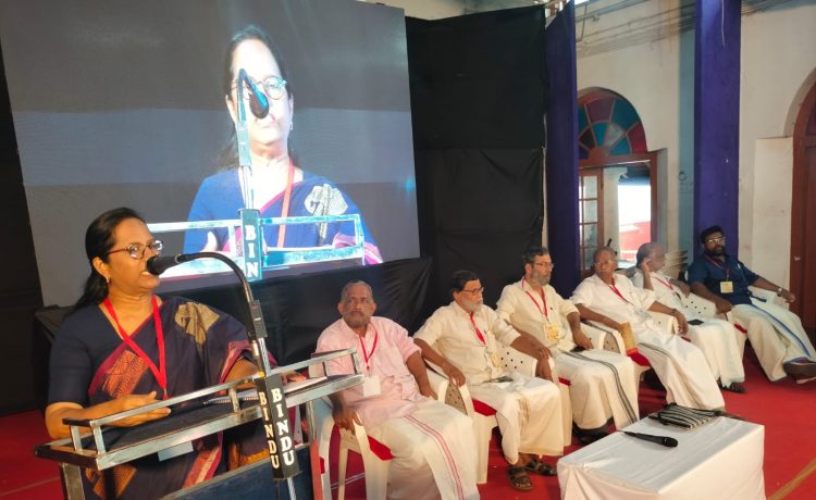 ഭരണഘടനയെ അംഗീകരിക്കാത്തവരാണ് ആർ എസ് എസുകാർ. ഭാരതീയമായതൊന്നും ഭരണഘടനയിലില്ലെന്നാണ് ഗോൾവാൾക്കർ തന്നെ പറഞ്ഞിരിക്കുന്നത്. ഭരണഘടനയെ അംഗീകരിക്കാത്തവരാണ് ആർ എസ് എസുകാർ. ഭാരതീയമായതൊന്നും ഭരണഘടനയിലില്ലെന്നാണ് ഗോൾവാൾക്കർ തന്നെ പറഞ്ഞിരിക്കുന്നത്. ഭാരതം ഹിന്ദുക്കളുടേതാണെന്ന് വിചാരധാരയിൽ വ്യക്തമാക്കിയിട്ടുണ്ട്. ഭരണഘടനയെ പിന്തള്ളി മനുധർമ്മത്തിലേക്ക് നാടിനെ നയിക്കുന്നവർ രാജ്യം ഭരിക്കുമ്പോൾ അഡാനിയെപ്പോലുള്ളവർ സമസ്ത മേഖലകളിലും കുത്തക നേടിയെടുക്കുന്ന സാഹചര്യമാണുള്ളത്. രാജ്യ ചരിത്രം വളച്ചൊടിക്കുന്ന കേന്ദ്ര സർക്കാർ വ്യാജ ചരിത്രം നിർമിക്കുകയാണ്. മുഗൾ രാജവംശം ചരിത്രത്തിൽ നിന്ന് അപ്രത്യക്ഷമാകുന്നു. മലബാർ കലാപത്തിലെ പ്രധാനികളായ വ്യക്തികളെ സ്വാതന്ത്ര്യ സമര രക്തസാക്ഷികളുടെ പട്ടികയിൽ നിന്ന് ഒഴിവാക്കുന്നു. മലബാർ കലാപത്തെ വർഗീയ കലാപമായി ചിത്രീകരിക്കുന്നു. ടിപ്പു സുൽത്താനെ ഹിന്ദുക്കളുടെ ശത്രുവായി ചിത്രീകരിക്കുന്നു. ഇത്തരത്തിൽ നിരന്തരം കളവുകൾ പ്രചരിപ്പിച്ച് ചരിത്രം തന്നെ മാറ്റിയെഴുതുകയാണ് സംഘപരിവാറെന്നും അവർ പറഞ്ഞു.
