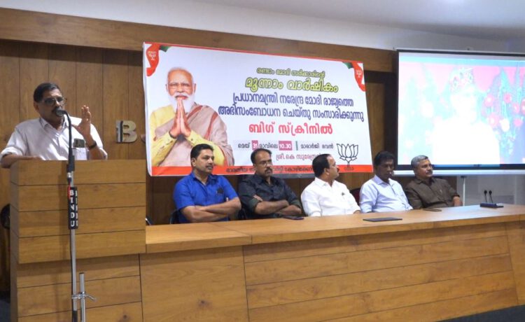 കോഴിക്കോട്;എട്ട് വര്ഷത്തെ മോദി ഭരണം രാജ്യത്തിന് കരുത്തുറ്റ സമ്പദ് വ്യവസ്ഥ പ്രദാനം ചെയ്തുവെന്ന് ബിജെപി സംസ്ഥാന വൈസ്പ്രസിഡന്റ് വി.വി.രാജന് പറഞ്ഞു.ലോകത്തിലെ ശക്തമായ ആറാമത്തെ സമ്പദ് വ്യവസ്ഥ ഭാരതത്തിന്റേതാണ്.വിദേശ രാജ്യങ്ങളുടെ ഇടയില് ഭാരതിയര്ക്ക് ഇന്ന് വലിയ അംഗീകാരമാണ് ലഭിക്കുന്നത്.അതോടൊപ്പം തന്നെ സാമൂഹ്യ ക്ഷേമ പദ്ധതികള് ജനങ്ങളുടെ ജീവിത നിലവാരത്തില് വലിയ മാറ്റം വരുത്തി ക്കഴിഞ്ഞു.സമയബന്ധിതമായി രാഷ്ട്രീയ നയ തീരുമാനങ്ങളെടുക്കാനും അത് നടപ്പിലാക്കാനും ഇച്ഛാശക്തി കാണിച്ചതുകൊണ്ടാണ് ഈ പുരോഗതികള് ഉണ്ടായത്.ദാരിദ്ര്യ നിര്മ്മാര്ജ്ജനം ഫലം കണ്ടു കഴിഞ്ഞു. ഇന്ന് മോദി ഗവണ്മെന്റിന്റെ ഏതെങ്കിലും പദ്ധതിയുടെ ഗുണഭോക്താക്കള് അല്ലാത്തവര് ഉണ്ടെന്ന് തോന്നുന്നില്ലെന്നും വി.വി.രാജന് അഭിപ്രായപ്പെട്ടു.രണ്ടാം നരേന്ദ്രമോദി സര്ക്കാരിന്റെ മൂന്നാം വാർഷികാഘോഷങ്ങളുടെ കോഴിക്കോട് ജില്ല തല ഉദ്ഘാടനം തളി മാരാര്ജി നിര്വ്വഹിച്ചു സംസാരിക്കുകയായിരുന്നു അദ്ദേഹം. പ്രധാന മന്ത്രിയുടെ കിസാന് സമ്മാന് നിധി നിക്ഷേപിച്ചുകൊണ്ടുളള രാജ്യത്തെ ഗുണഭോക്താക്കളോടുളള അഭിസംഭോധന പരിപാടിയുടെ ബിഗ് സ്ക്രീന് പ്രദര്ശനവും നടന്നു.ജില്ലാ പ്രസിഡന്റ് അഡ്വ.വി.കെ.സജീവന് അദ്ധ്യക്ഷത വഹിച്ചു.ഒബിസി മോര്ച്ച സംസ്ഥാന പ്രസിഡന്റ് എന്പി.രാധാകൃഷ്ണന്,ജില്ലാ ജനറല് സെക്രട്ടറി ഇ.പ്രശാന്ത് കുമാര്,അഡ്വ.കെ.വി സുധീര്,ബി.കെ.പ്രേമന്,അജയ് നെല്ലിക്കോട്,ടി.വി.ഉണ്ണിക്കൃഷ് ണന്,അഡ്വ.രമ്യ മുരളി,ശശിധരന് അയനിക്കാട്,തിരുവണ്ണൂര് ബാലകൃഷ്ണന്,എന്.ശിവപ്രസാദ് എന്നിവര് സംസാരിച്ചു.