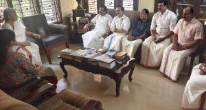 ഉച്ചയക്ക് രണ്ടു മണിക്ക് ‘സിതാര’യില് എത്തിയ കേന്ദ്രമന്ത്രിയെ എം.ടിയുടെ ഭാര്യ കലാമണ്ഡലം സരസ്വതിയും മകള് അശ്വതി വി. നായരും സ്വീകരിച്ചു. പത്തു മിനിറ്റ് മന്ത്രി കുടുംബത്തോട് സംസാരിച്ചു. എം.ടിയുടെ കഥ വായിച്ച ഭൂതകാലം അവരുമായി പങ്കുവച്ചു. ബിജെപി ജില്ലാ പ്രസിഡന്റ് അഡ്വ.വി.കെ.സജീവന്, വൈസ് പ്രസിഡന്റ് അഡ്വ.കെ.വി.സുധീര്, നോര്ത്ത് മണ്ഡലം ജനറല് സെക്രട്ടറി പ്രവീണ് തളിയില്, വൈസ് പ്രസിഡന്റ് എം.ജഗന്നാഥന് എന്നിവര് മന്ത്രിയെ അനുഗമിച്ചു.