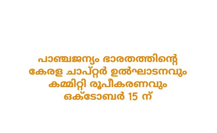 പാഞ്ചജന്യം ഭാരതത്തിൻ്റെ കേരള ചാപ്റ്റർ ഉൽഘാടനവും കമ്മിറ്റി രൂപീകരണവും ഒക്ടോബർ 15 ന് ഉച്ചക്ക് ശേഷം 2.30 മണിക്ക് കോഴിക്കോട് തിരുവണ്ണൂർ സ്വാതി തിരുന്നാൾ കലാകേന്ദ്രത്തിൽ വെച്ച് നടക്കുമെന്നു സംഘാടക സമിതി ഭാരവാഹികൾ അറിയിച്ചു.
