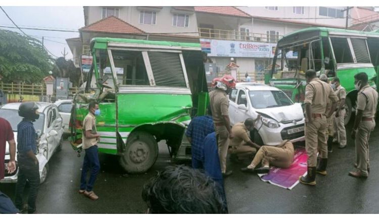 ആദ്യം റോഡിലെ കാറിൽ ഇടിക്കുകയായിരുന്നു. തുടർന്ന് ഇരുവശങ്ങളിലും നിർത്തിയിട്ടിരുന്ന ഓട്ടോറിക്ഷ ഉൾപ്പെടെയുള്ള വാഹനങ്ങളിൽ ബസ് വന്നിടിക്കുകയായിരുന്നു. ബസ് മരത്തിലിടിച്ചാണ് നിന്നത്. മുതിര്ന്ന സ്ത്രീകള് ഉള്പ്പെടെ പരിക്കേറ്റ കാര് യാത്രികരെ ആശുപത്രിയില് പ്രവേശിപ്പിച്ചു.