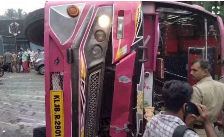 കോരപ്പുഴ പാലത്തിന് സമീപം സ്വകാര്യ ബസ് മറിഞ്ഞു; നിരവധി പേര്‍ക്ക് പരുക്ക്