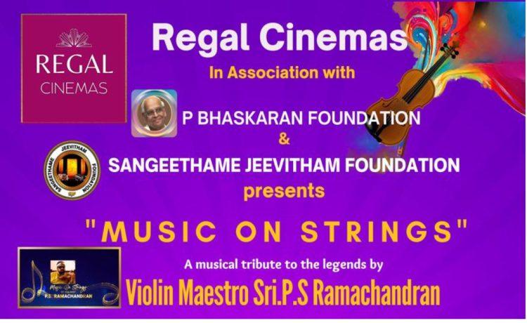കോഴിക്കോട്: സംഗീതലോകത്തെ മഹാരഥൻമാർക്ക് ആദരം അർപ്പിച്ച് പ്രശസ്ത വയലിനിസ്റ്റ് പി.എസ് രാമചന്ദ്രനും സംഘവും അവതരിപ്പിക്കുന്ന മ്യൂസിക് ഓൺ സ്ട്രിങ്ങ്സ് എന്ന പരിപാടി ഡിസംബർ 15 ന് വൈകീട്ട് ആറു മുതൽ ഒമ്പതു വരെ കോഴിക്കോട് കാലിക്കറ്റ് ടവറിൽ നടക്കും. ഗായകൻ ഉണ്ണിമേനോൻ മുഖ്യാതിഥിയാവും. നൗഷാദ്, സലിൽ ചൗധരി, എം.എസ് വിശ്വനാഥൻ, ദക്ഷിണാമൂർത്തി, ദേവരാജൻ, ഇളയരാജ, എ.ആർ.റഹ്മാൻ തുടങ്ങി പ്രശസ്തരായ മിക്കവാറും എല്ലാ സംഗീത സംവിധായർക്കും വയലിൻ വായിച്ചൻ രാമചന്ദ്രൻ ഗാനസസ്യയിൽ മലയാളത്തിലും ഇതര ഭാഷകളിലുള്ള സംഗീതസംവിധായകരുടെ ഗാനങ്ങളും വയലിനിൽ ആലപിക്കും. റീഗൽ സിനിമാസും പി.ഭാസ്ക്കരൻ ഫൌണ്ടേഷനും സംഗീതമേ ജീവിതം ഫൌണ്ടേഷനുമാണ് പരിപാടി സംഘടിപ്പിക്കുന്നത്.