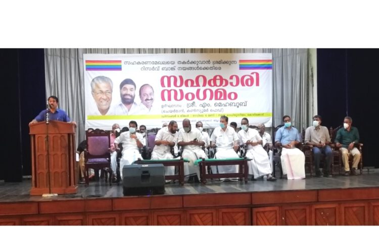 സഹകണ മേഖലയെ തകർക്കാൻ ശ്രമിക്കുന്ന റിസർവ് ബാങ്ക് നയങ്ങൾക്കെതിരെ കോഴിക്കോട് സംഘടിപ്പിച്ച സഹകാരി സംഗമം ഉദ്ഘാടനം ചെയ്തു സംസാരിക്കുകയായിരുന്നു അദ്ധേഹം. സഹകരണ മേഖലയെ തകർക്കാനുള്ള നീക്കത്തിനെതിരെയുള്ള സമരം ശക്തമാക്കും.ഇതിൻ്റെ ഭാഗമായി റിസർവ് ബാങ്കിനു മുന്നിൽ സമരം സംഘടിപ്പിക്കും.തുടർന്ന് കേന്ദ്ര സർക്കാർ ഓഫീസുകൾക്കു മുന്നിൽ തുടർച്ചയായ സമരങ്ങൾ നടത്തുമെന്നും. ഇടപാടുകാരെയും പൊതുജനങ്ങളെയും ബോധവൽക്കരിക്കാൻ സഹകാരികളുടെയും, ജീവനക്കാരുടേയും നേതൃത്വത്തിൽ ക്യാമ്പയിൻ ആരംഭിക്കുമെന്നും എം. മെഹബൂബ് പറഞ്ഞു.