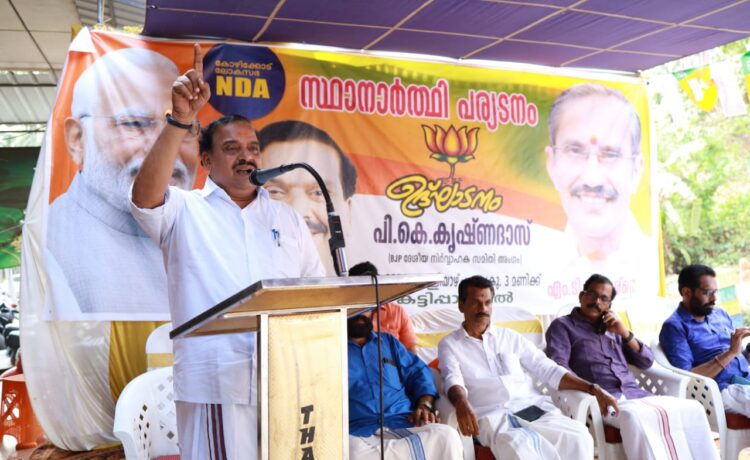 വികസനത്തെപ്പറ്റി ഒന്നും പറയാനില്ലാത്ത എല്‍ഡിഎഫും യുഡിഎഫും വര്‍ഗീയവികാരം ഇളക്കിവിടുന്നു. വയനാട്ടില്‍ ലീഗിന്റെ പതാകയ്ക്ക് ഒപ്പം ത്രിവര്‍ണപതാക ഉപേക്ഷിക്കേണ്ടിവന്നത് ലീഗിന്റെ ഭീഷണിയെ തുടര്‍ന്നാണ്. സ്വന്തം പതാകയെ അഭിമാനത്തോടെ ഉയര്‍ത്തിപ്പിടിക്കാന്‍ സാധിക്കാത്തവണ്ണം കോണ്‍ഗ്രസ് മതഭീകരസംഘടനകള്‍ക്ക് കീഴടങ്ങിയെന്നും പി കെ കൃഷ്ണദാസ് പറഞ്ഞു.