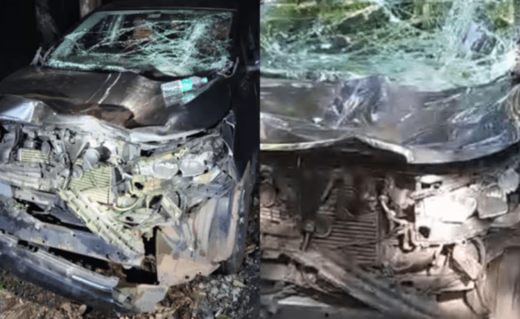 ആനയെ കണ്ട് യാത്രക്കാര് വാഹനം നിര്ത്തുകയായിരുന്നു. തുടര്ന്ന് ആന വന്നു കാറിന്റെ മുന്ഭാഗം തകര്ക്കുകയായിരുന്നു. ജോയി, ബേസില്, ജോസ് എന്നിവരാണ് കാറില് ഉണ്ടായിരുന്നത്.