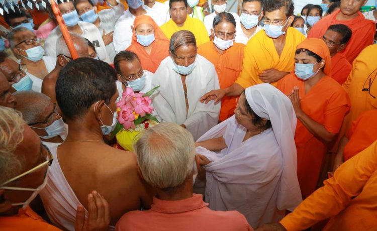 ആശ്രമത്തിലെത്തിയ ശിഷ്യപൂജിത ദര്ശനമന്ദിരത്തില് വിശ്രമിച്ചു. ഇന്ന് (ഏപ്രില് 8 ശനി) ഭക്തര്ക്ക് ദര്ശനം നല്കും. ഏപ്രില് 9 ന് രാവിലെ വിശ്വജ്ഞാനമന്ദിരത്തില് തിരിതെളിയിക്കും. അകത്തളത്തിലെ മണ്ഡപത്തില് നവജ്യോതിശ്രീകരുണാകരുവിന്റെ എണ്ണച്ചായചിത്രം പ്രതിഷ്ഠിക്കും.