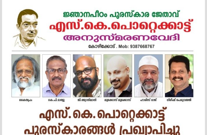 കോഴിക്കോട്:ജ്ഞാനപീഠം പുരസ്കാര ജേതാവ് എസ്.കെ.പൊറ്റെക്കാട്ട് അനുസ്മരണവേദിയും കണ്ണൂരിലെ എയറോസിസ് കോളേജ് ഓഫ് ഏവിയേഷൻ ആന്റ് മാനേജ്മെന്റ് സ്റ്റഡീസും സംയുക്തമായി ഏർപ്പെടുത്തിയ എസ്.കെ.പൊറ്റെക്കാട്ട് പുരസ്കാരങ്ങൾ പ്രഖ്യാപിച്ചു. ബഹുമുഖപ്രതിഭാ പുരസ്കാരത്തിന് കൈതപ്രം ദാമോദരൻ നമ്പൂതിരിയെ തിരഞ്ഞെടുത്തു.