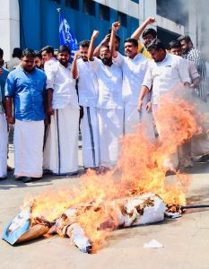 പ്രവർത്തകർ ഗതാഗത മന്ത്രി ആന്റണി രാജുവിന്റെ കോലം കത്തിച്ച് പ്രതിഷേധിക്കുകയും ചെയ്തു.